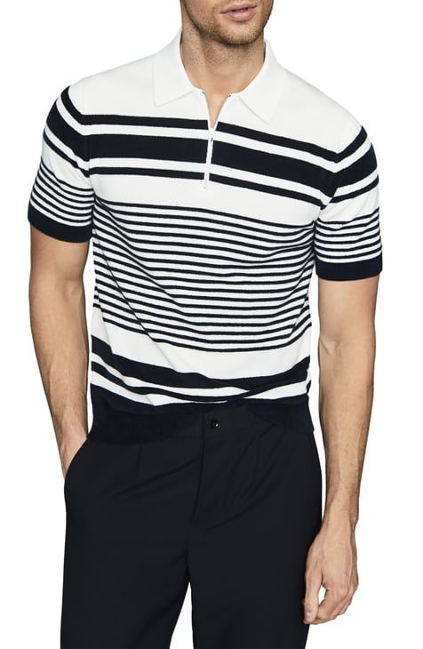 Reiss Cassidy Striped Zip Neck Polo Shirt